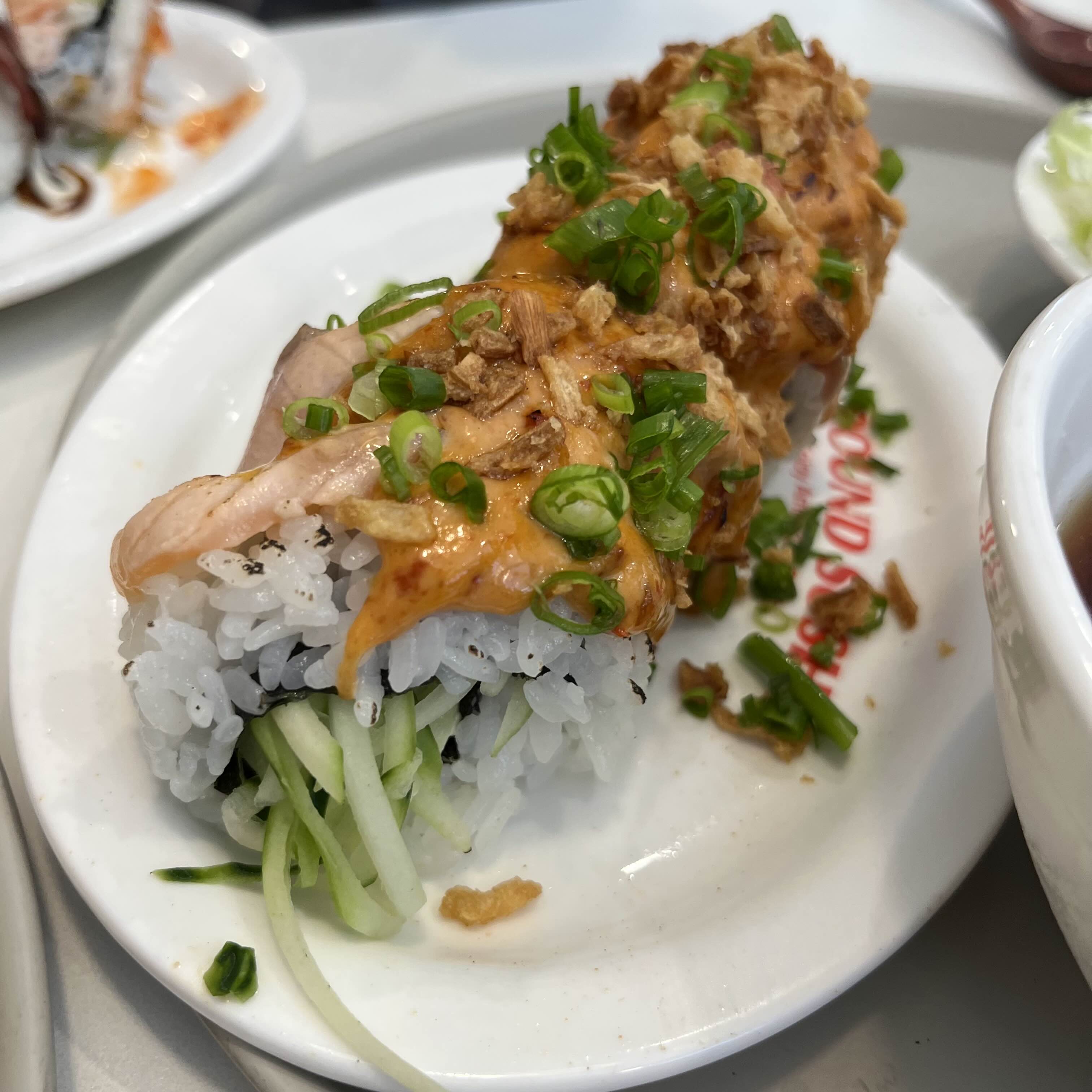 연어, 스파이시튜나, 크림치즈, 오이, 치플레마요로 만들어진건데
