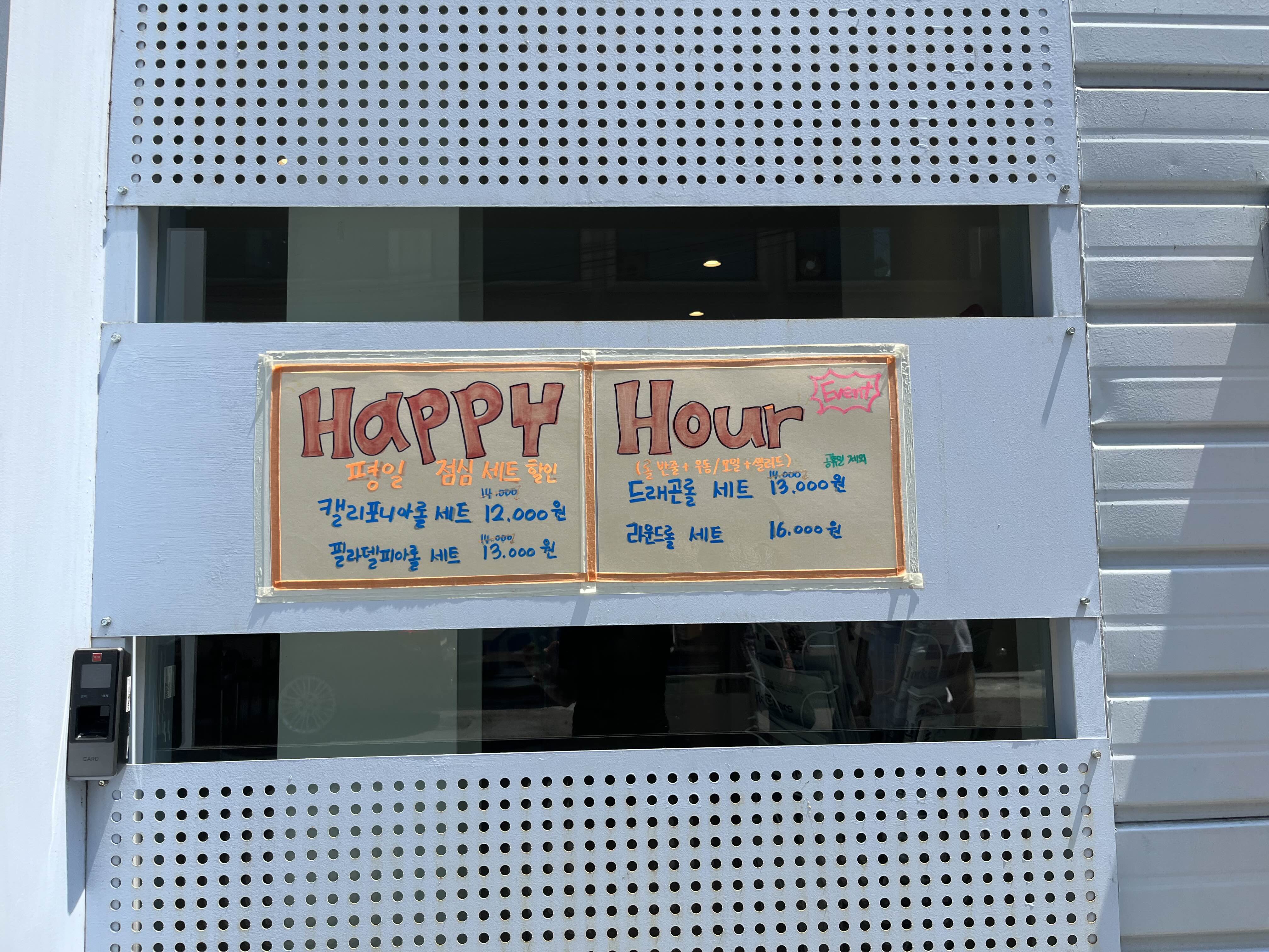 그리고 평일 점심시간에는 해피아워로 할인도 받을 수 있어요!